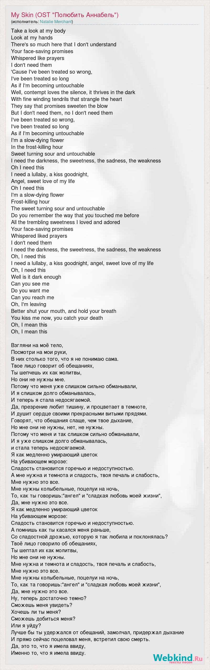 А как ты думаешь, о чем песня "My Skin (OST "Полюбить Аннабель")" ?