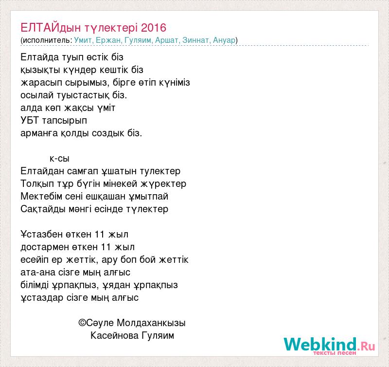 А как ты думаешь, о чем песня "ЕЛТАЙдын түлектері 2016" ?