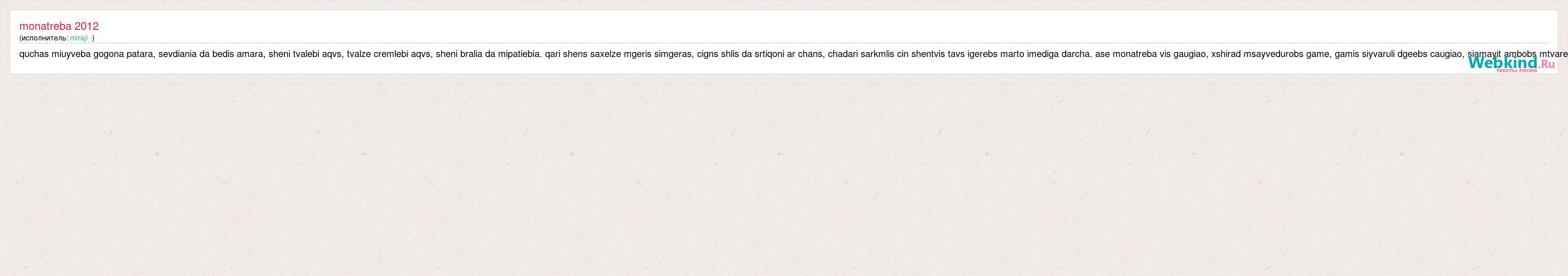 А как ты думаешь, о чем песня "Monatreba 2012" ?