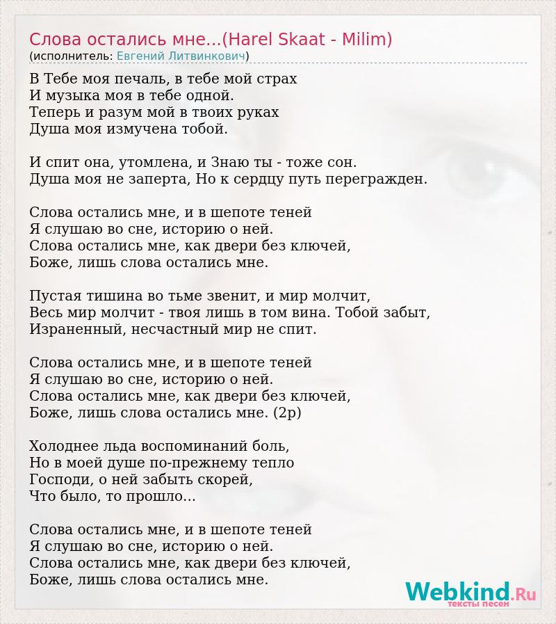 Слова остались мне...(Harel Skaat - Milim)