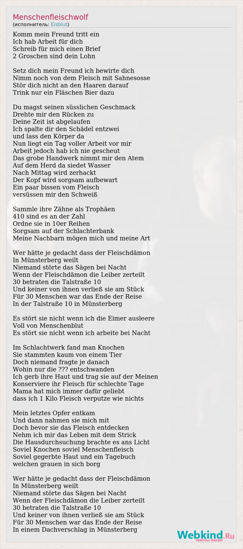 А как ты думаешь, о чем песня "Menschenfleischwolf" ?
