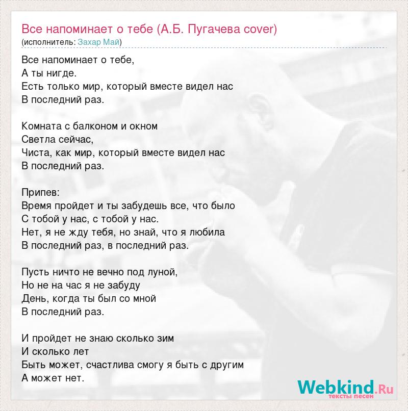А как ты думаешь, о чем песня "Все напоминает о тебе (А.Б. Пугачева cover)" ?