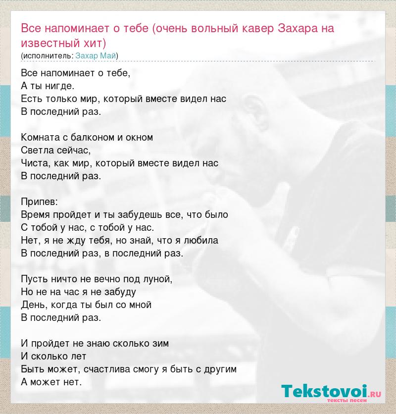 А как ты думаешь, о чем песня "Все напоминает о тебе (очень вольный кавер Захара на известный хит)" ?