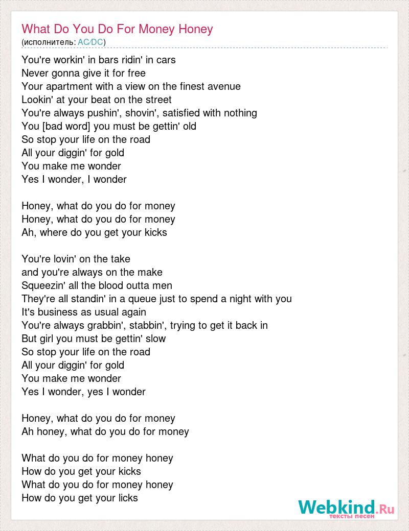 А как ты думаешь, о чем песня "What Do You Do For Money Honey" ?
