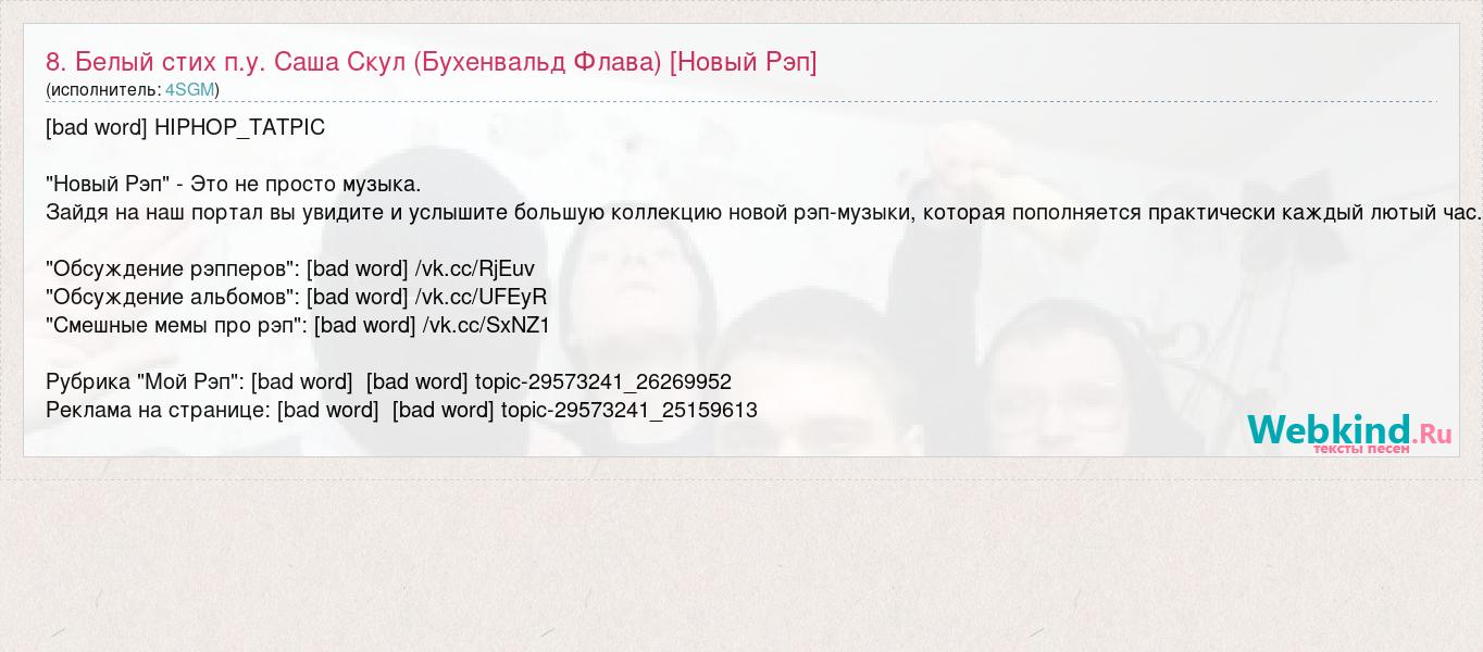 8. Белый стих п.у. Саша Скул (Бухенвальд Флава) [Новый Рэп]