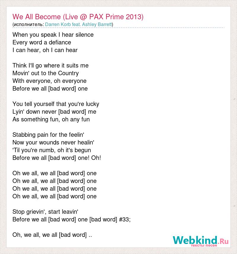 А как ты думаешь, о чем песня "We All Become (Live @ PAX Prime 2013)" ?