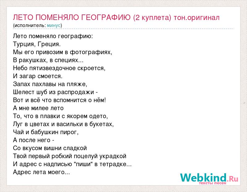 ЛЕТО ПОМЕНЯЛО ГЕОГРАФИЮ (2 куплета) тон.оригинал