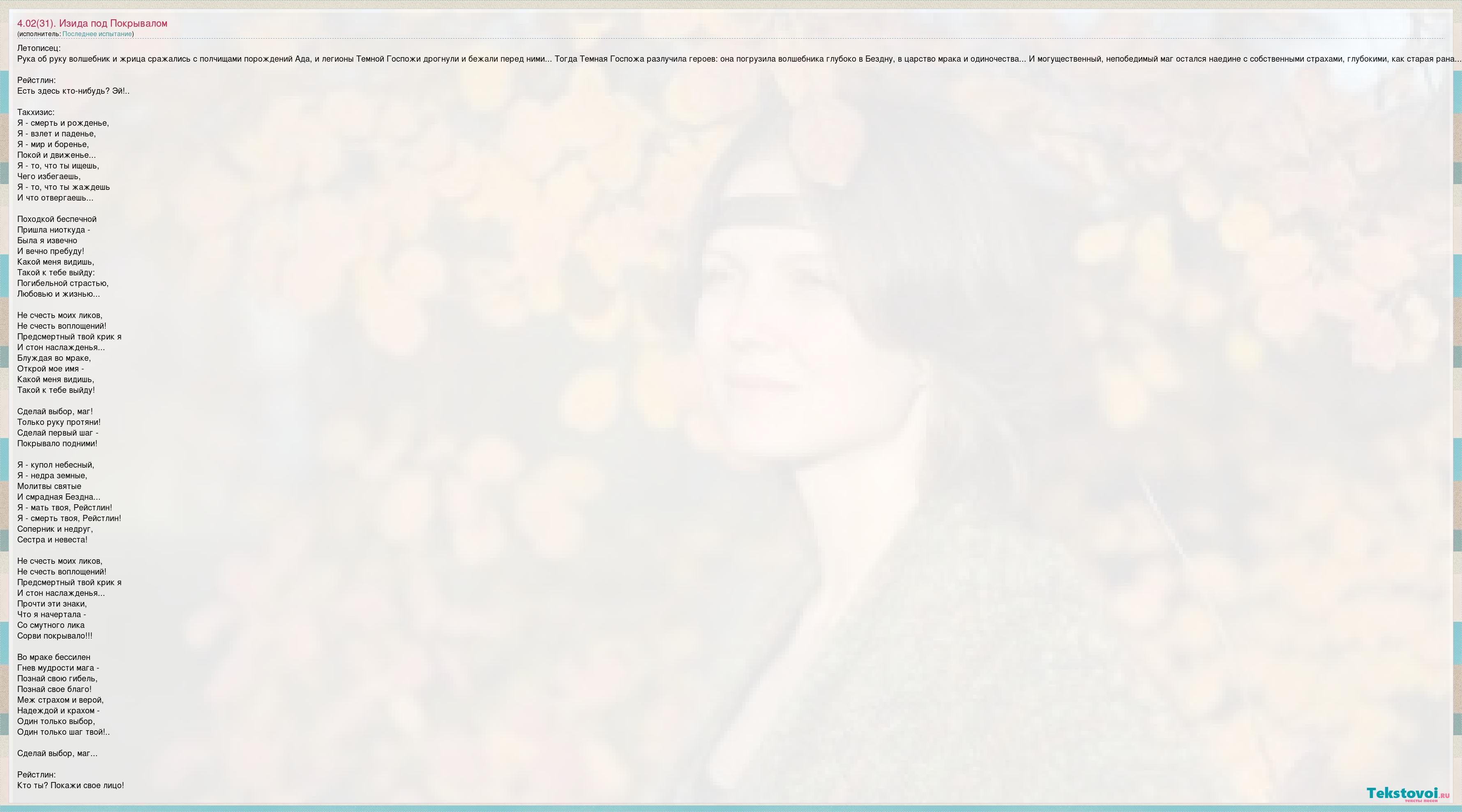 А как ты думаешь, о чем песня "4.02(31). Изида под Покрывалом" ?