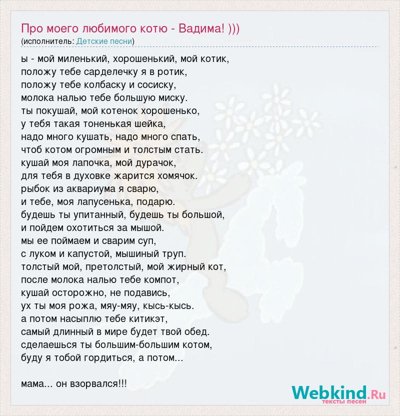 А как ты думаешь, о чем песня "Про моего любимого котю - Вадима! )))" ?