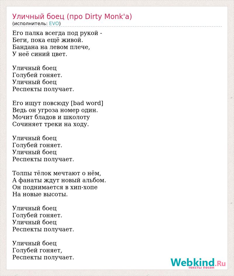 А как ты думаешь, о чем песня "Уличный боец (про Dirty Monk'a)" ?
