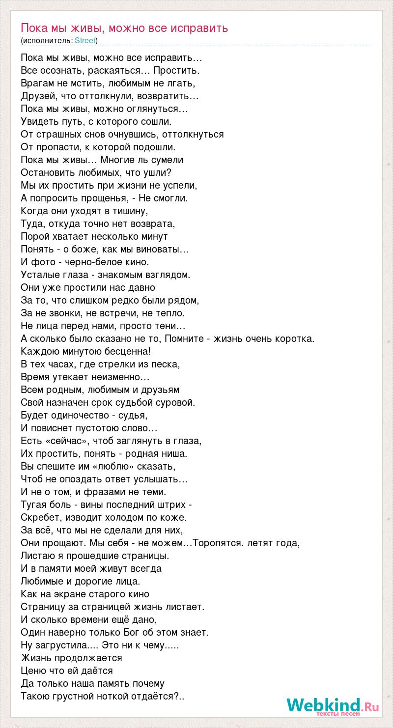 А как ты думаешь, о чем песня "Пока мы живы, можно все исправить" ?