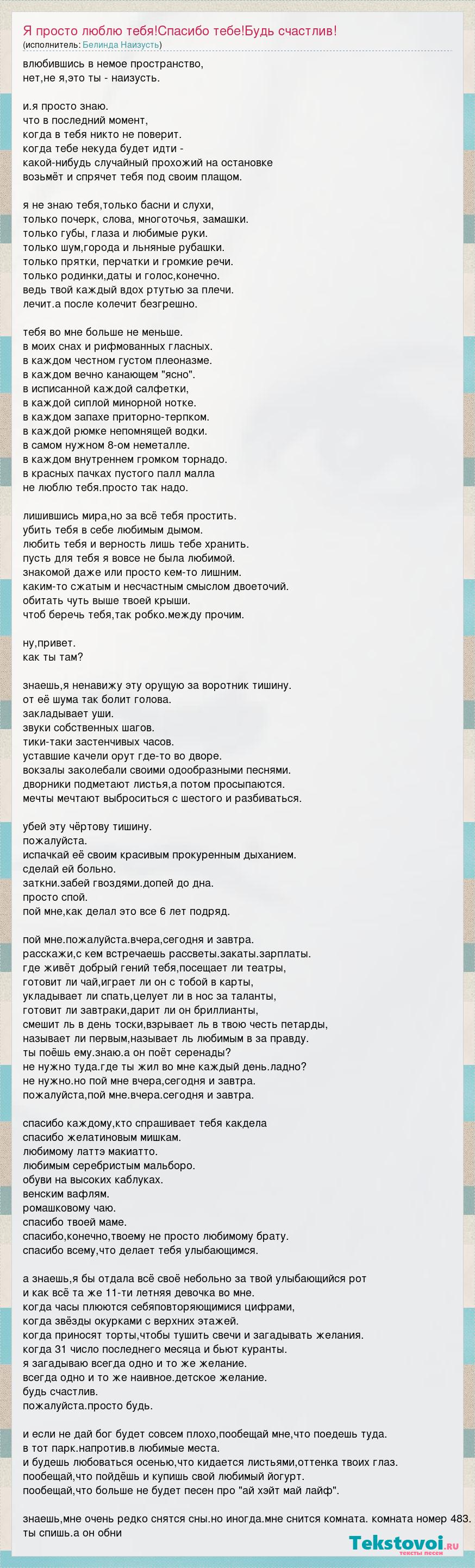 А как ты думаешь, о чем песня "Я просто люблю тебя!Спасибо тебе!Будь счастлив!" ?