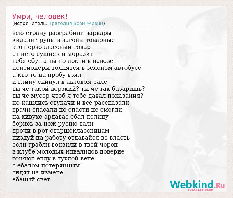 А как ты думаешь, о чем песня "Умри, человек!" ?