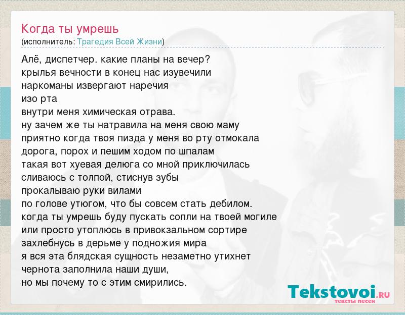А как ты думаешь, о чем песня "Когда ты умрешь" ?