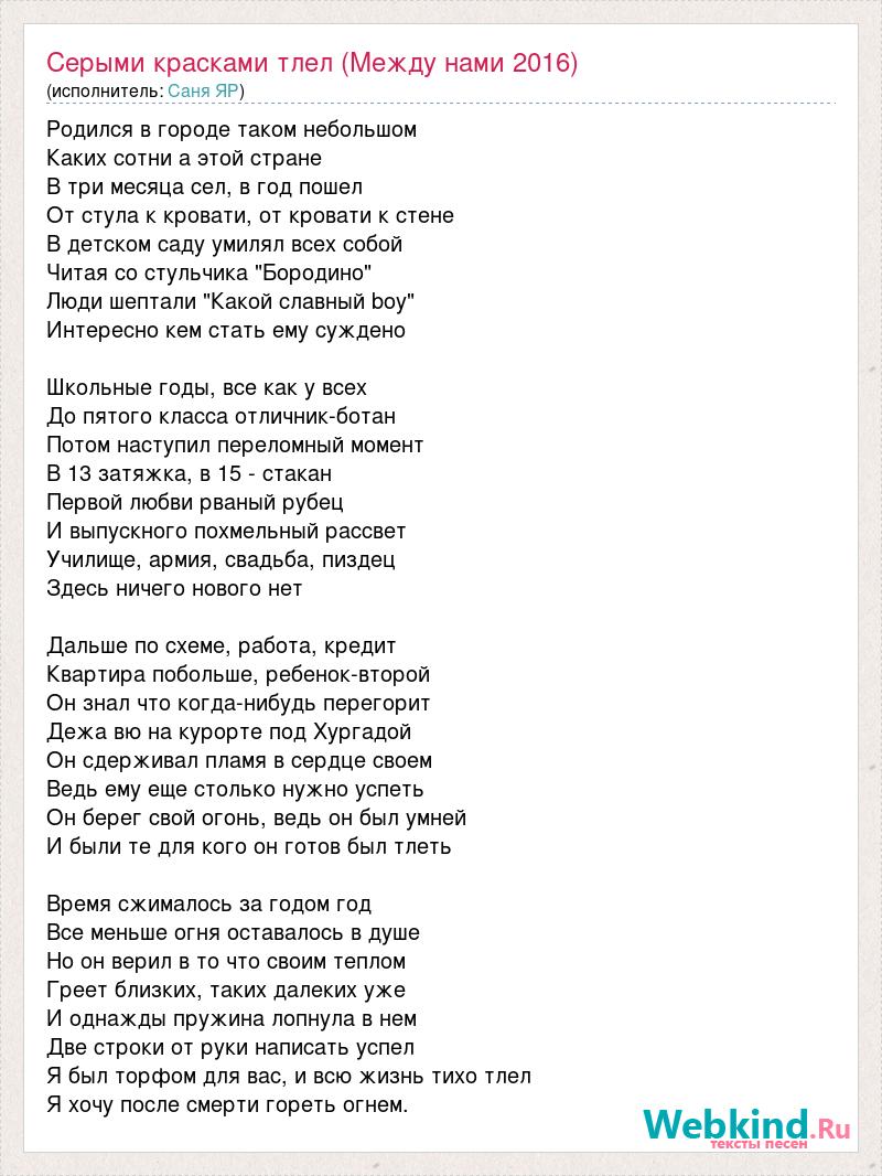 А как ты думаешь, о чем песня "Серыми красками тлел (Между нами 2016)" ?