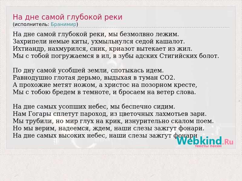 А как ты думаешь, о чем песня "На дне самой глубокой реки" ?