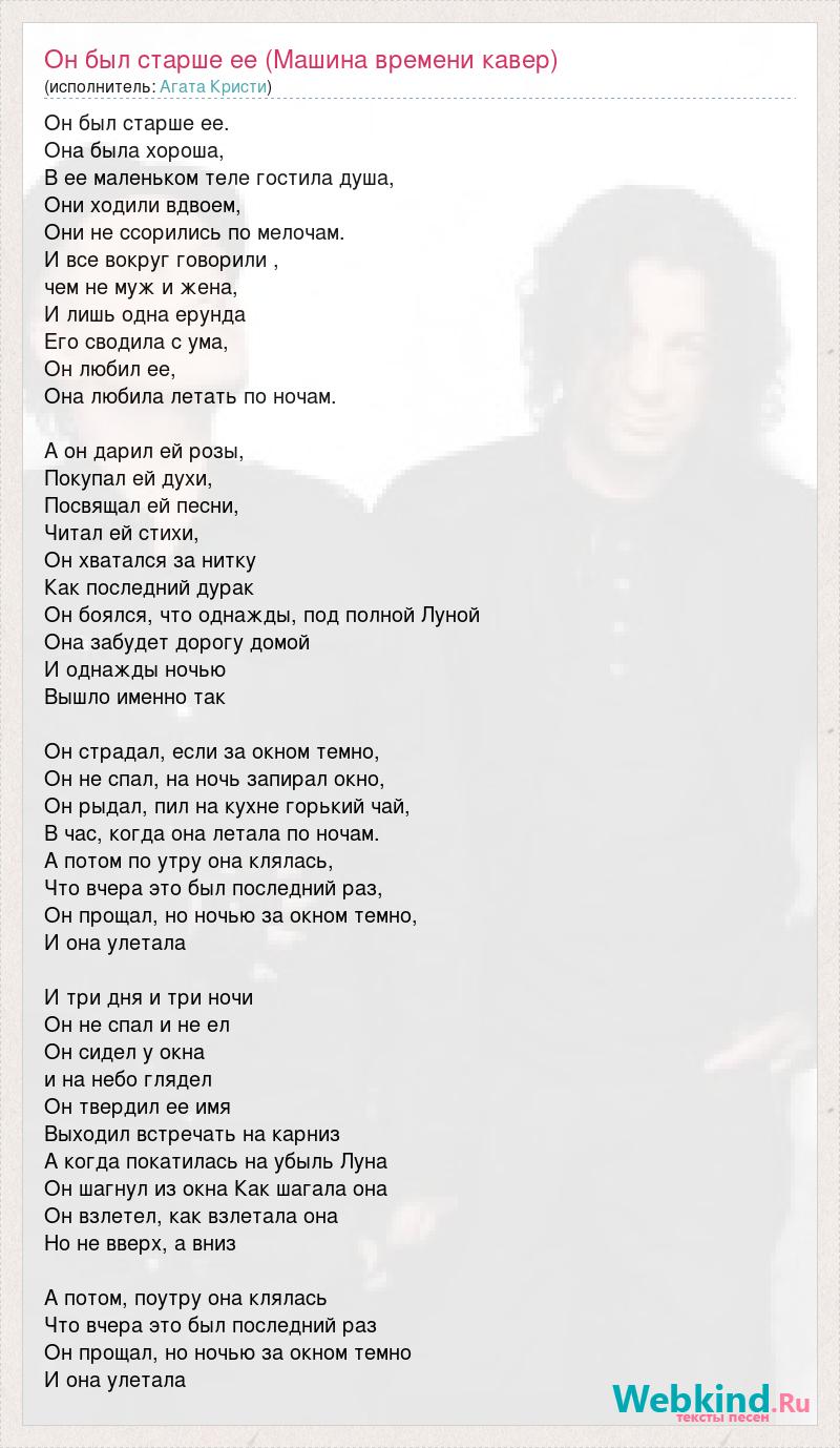 А как ты думаешь, о чем песня "Он был старше ее (Машина времени кавер)" ?