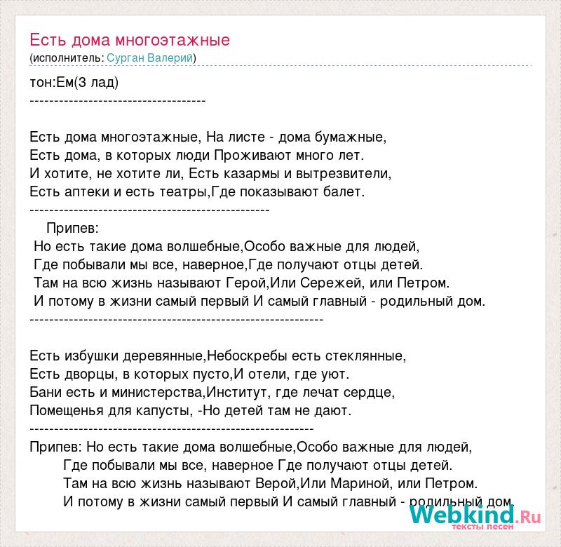 Припев: Но есть такие дома волшебные,Особо важные для людей,