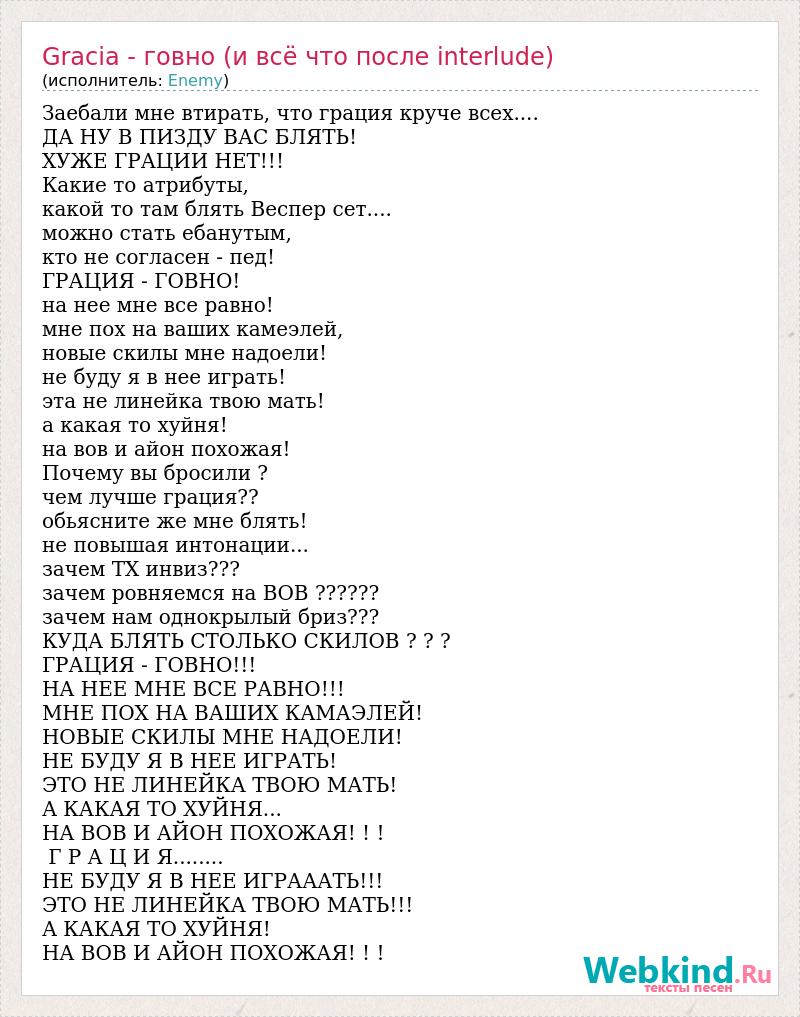 А как ты думаешь, о чем песня "Gracia - говно (и всё что после interlude)" ?