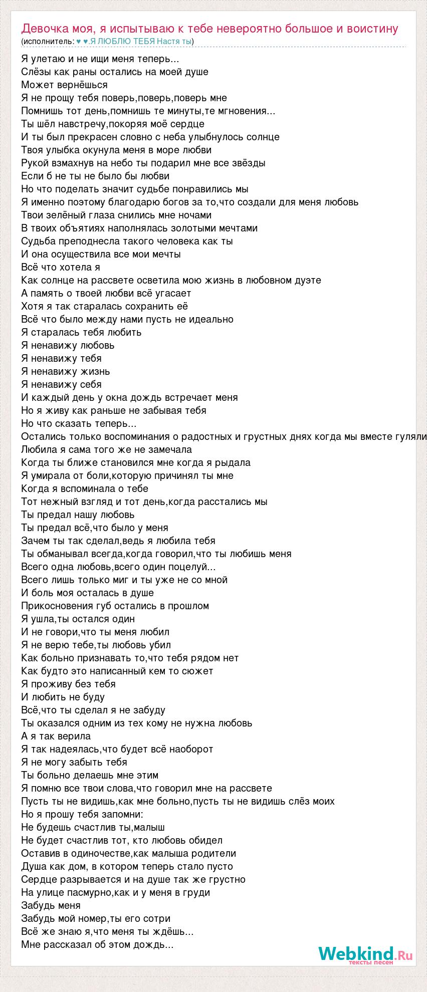 Главная→Исполнители→♥ ♥.Я ЛЮБЛЮ ТЕБЯ Настя ты→Девочка моя, я испытываю к тебе невероятно большое и воистину