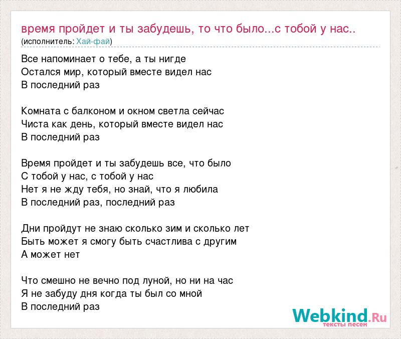 Время пройдет и ты забудешь, то что было...с тобой у нас..