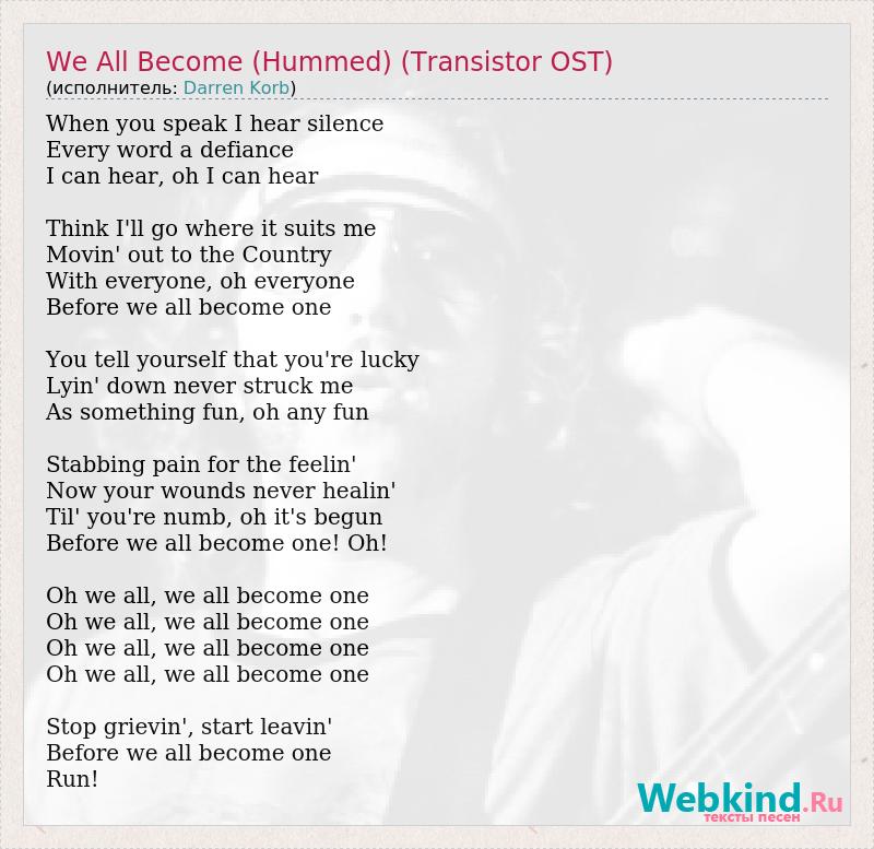 А как ты думаешь, о чем песня "We All Become (Hummed) (Transistor OST)" ?