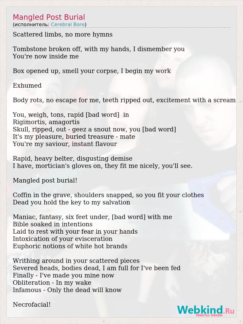 А как ты думаешь, о чем песня "Mangled Post Burial" ?