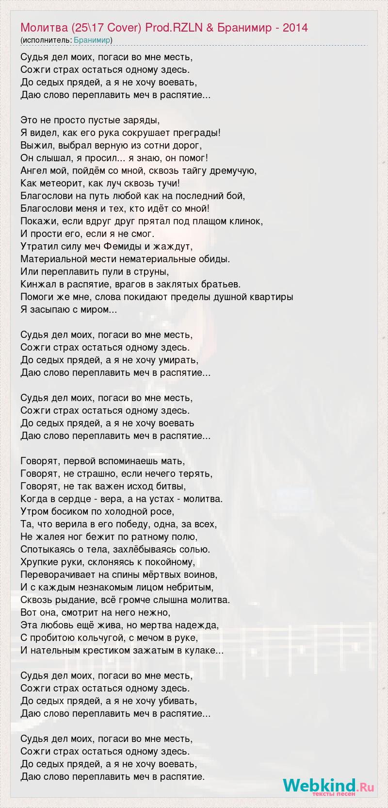А как ты думаешь, о чем песня "Молитва (25\17 Cover) Prod.RZLN & Бранимир - 2014" ?
