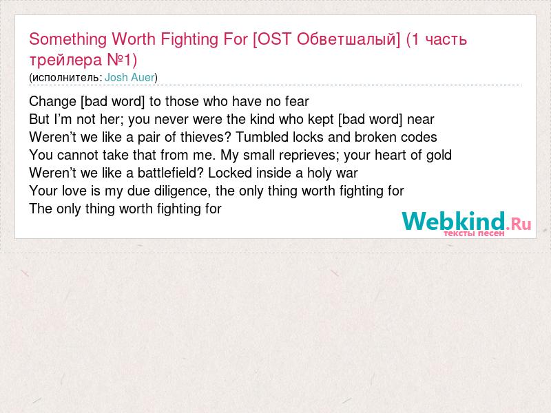 А как ты думаешь, о чем песня "Something Worth Fighting For [OST Обветшалый] (1 часть трейлера №1)" ?