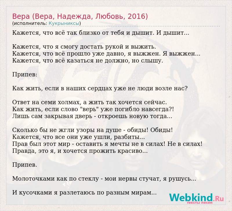 А как ты думаешь, о чем песня "Вера (Вера, Надежда, Любовь, 2016)" ?