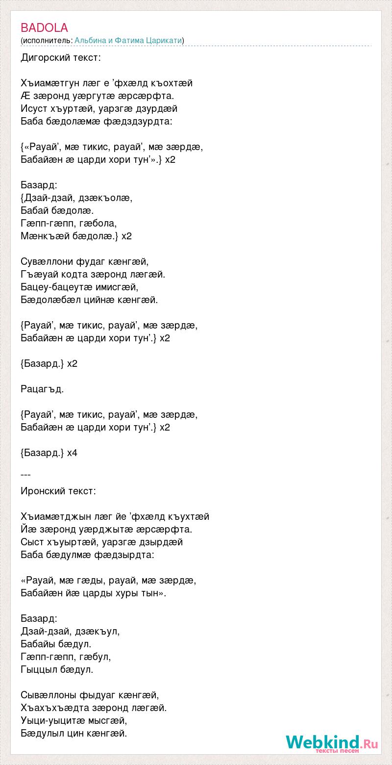 {Рауай’, мæ тикис, рауай’, мæ зæрдæ,