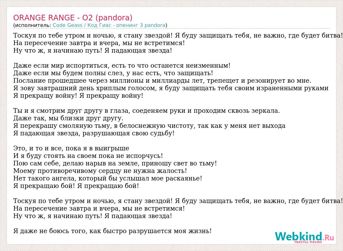 А как ты думаешь, о чем песня "ORANGE RANGE - O2 (pandora)" ?