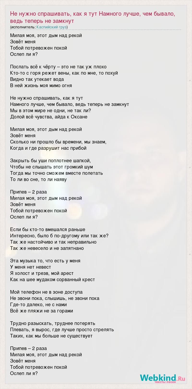 Главная→Исполнители→Каспийский Груз→Не нужно спрашивать, как я тут Намного лучше, чем бывало, ведь теперь не замкнут