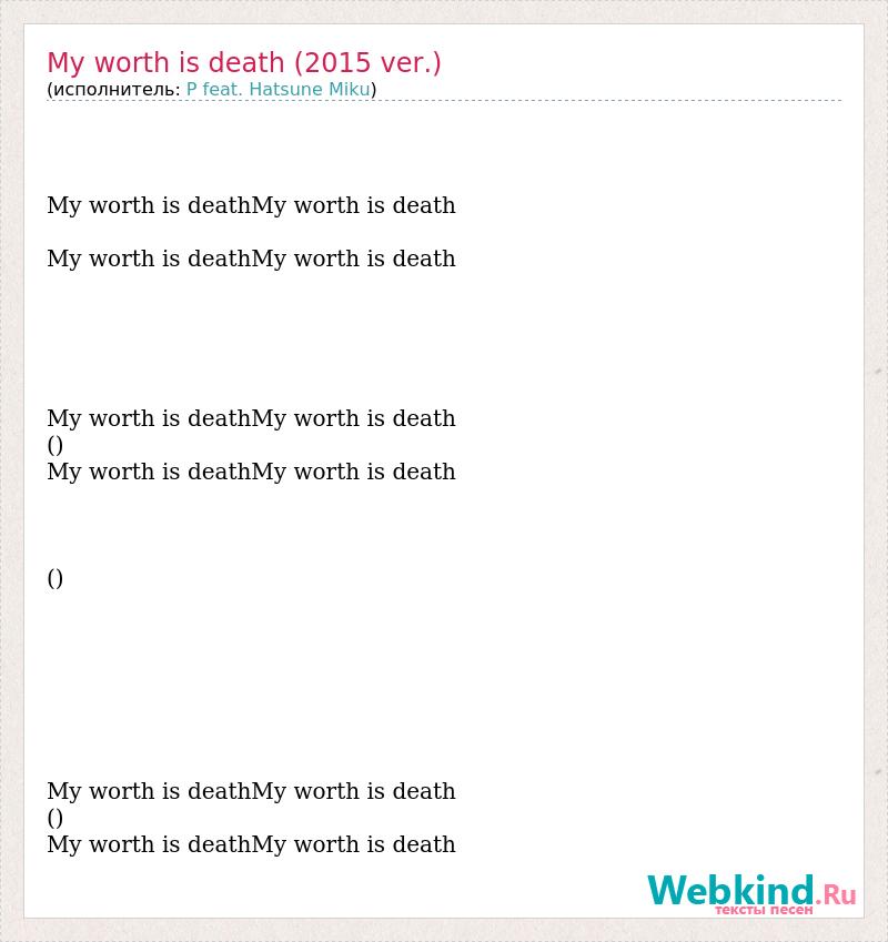 А как ты думаешь, о чем песня "My worth is death (2015 ver.)" ?