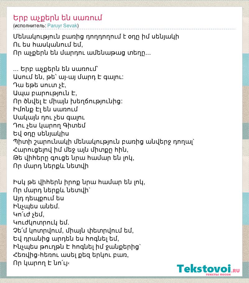 А как ты думаешь, о чем песня "Երբ աչքերն են սառում" ?