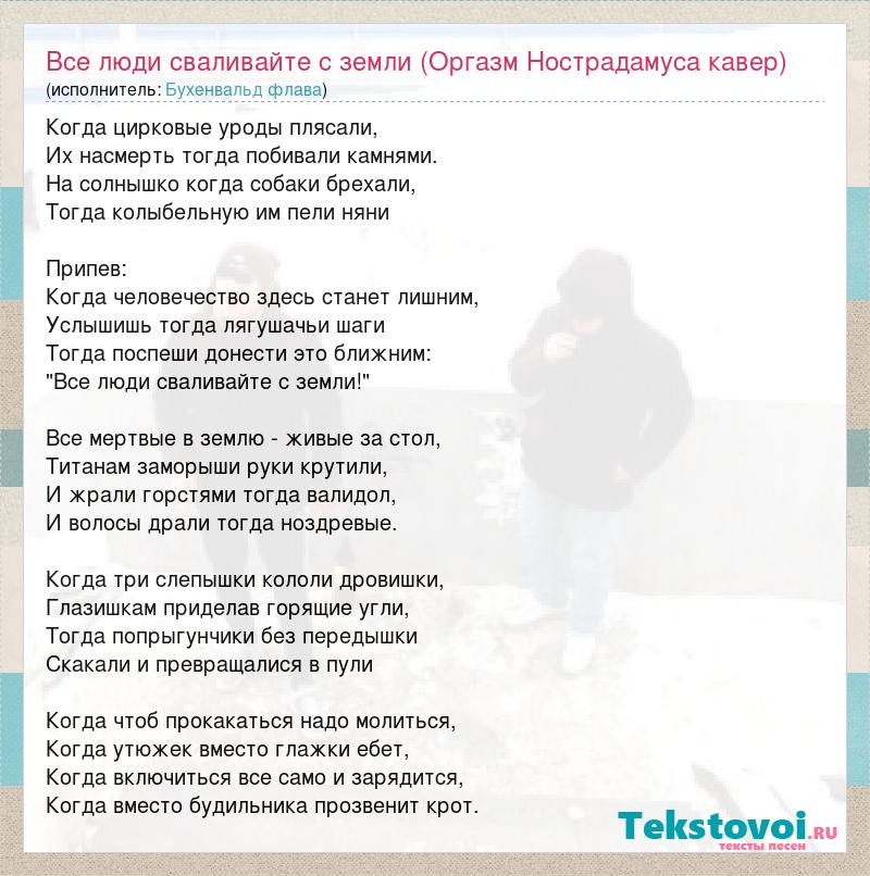 А как ты думаешь, о чем песня "Все люди сваливайте с земли (Оргазм Нострадамуса кавер)" ?