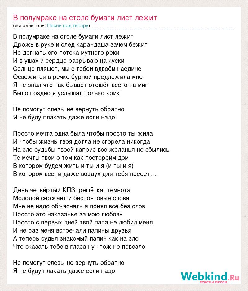 А как ты думаешь, о чем песня "В полумраке на столе бумаги лист лежит" ?