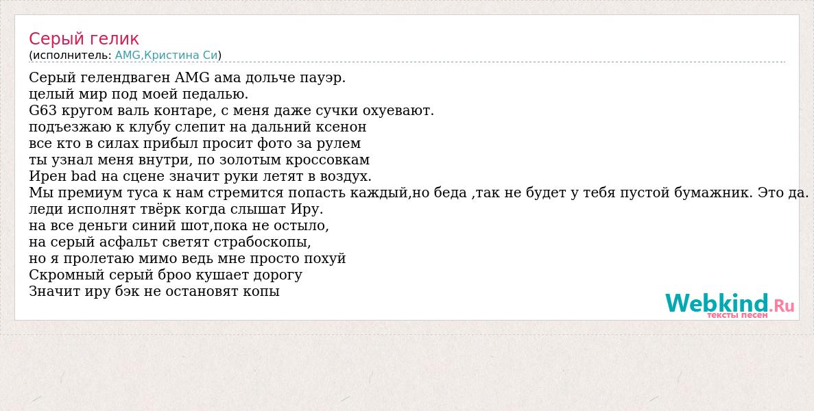 А как ты думаешь, о чем песня "Серый гелик" ?