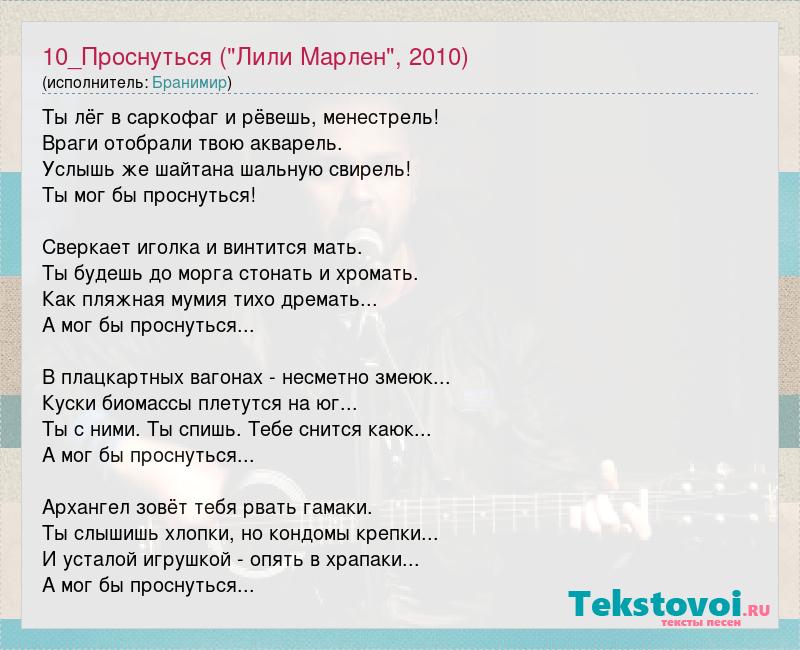 А как ты думаешь, о чем песня "10_Проснуться ("Лили Марлен", 2010)" ?