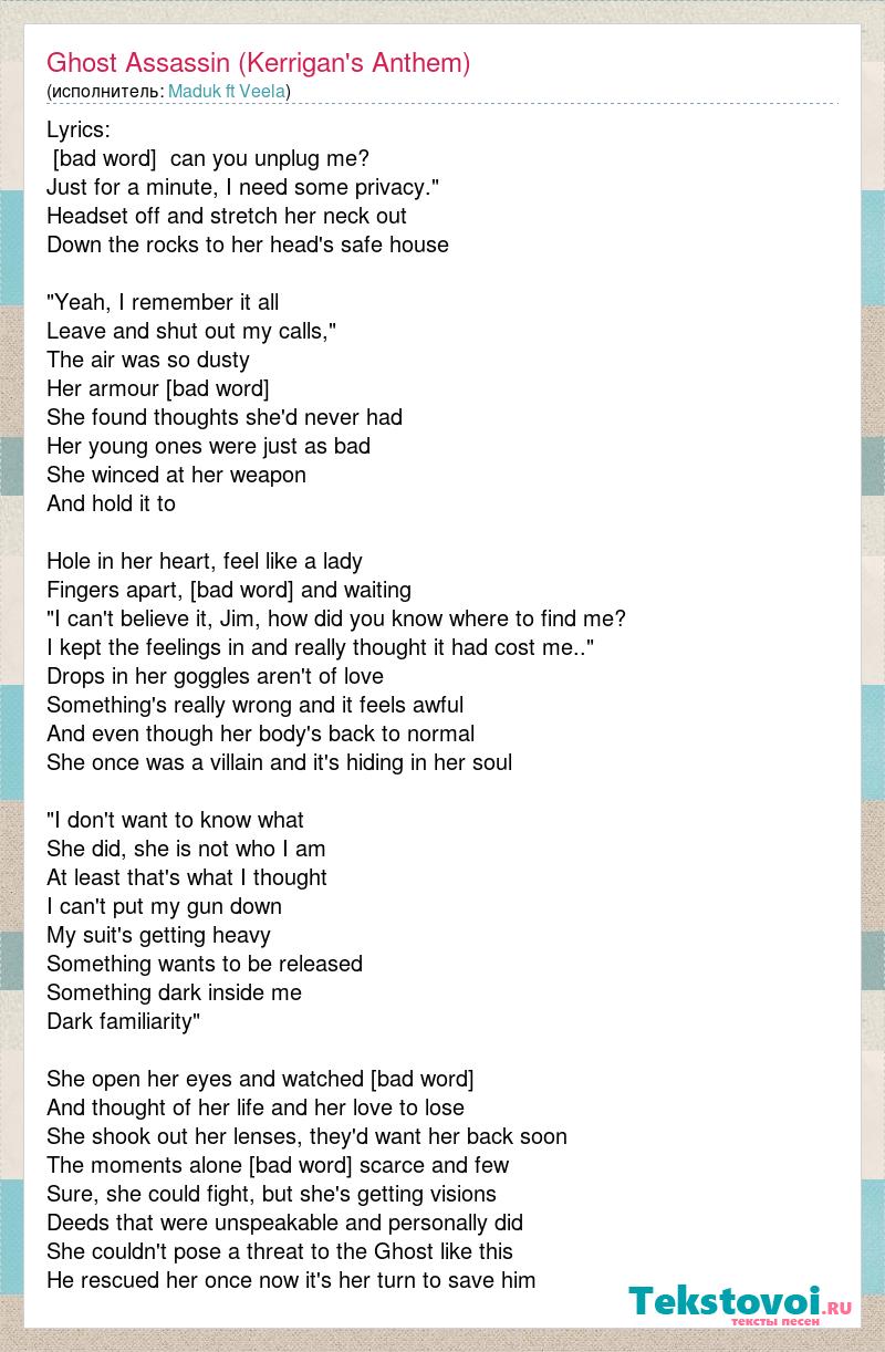 А как ты думаешь, о чем песня "Ghost Assassin (Kerrigan's Anthem)" ?