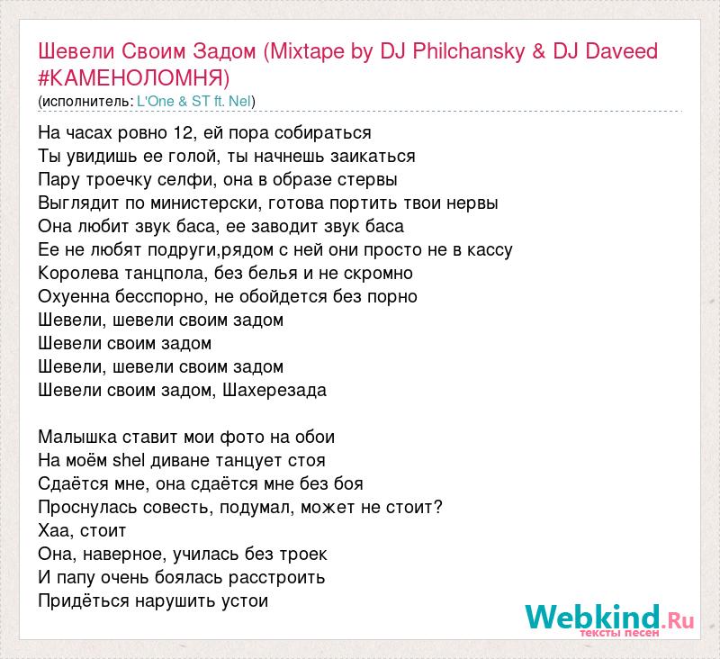 Главная→Исполнители→L'One & ST ft. Nel→Шевели Своим Задом (Mixtape by DJ Philchansky & DJ Daveed #КАМЕНОЛОМНЯ)