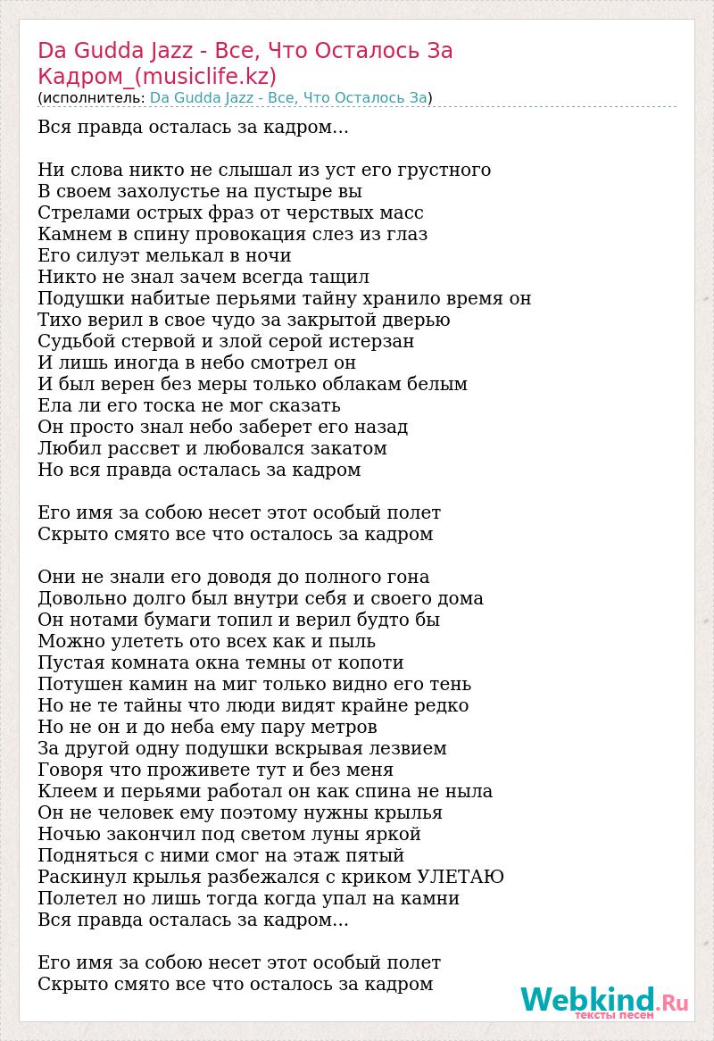 А как ты думаешь, о чем песня "Da Gudda Jazz - Все, Что Осталось За Кадром_(musiclife.kz)" ?