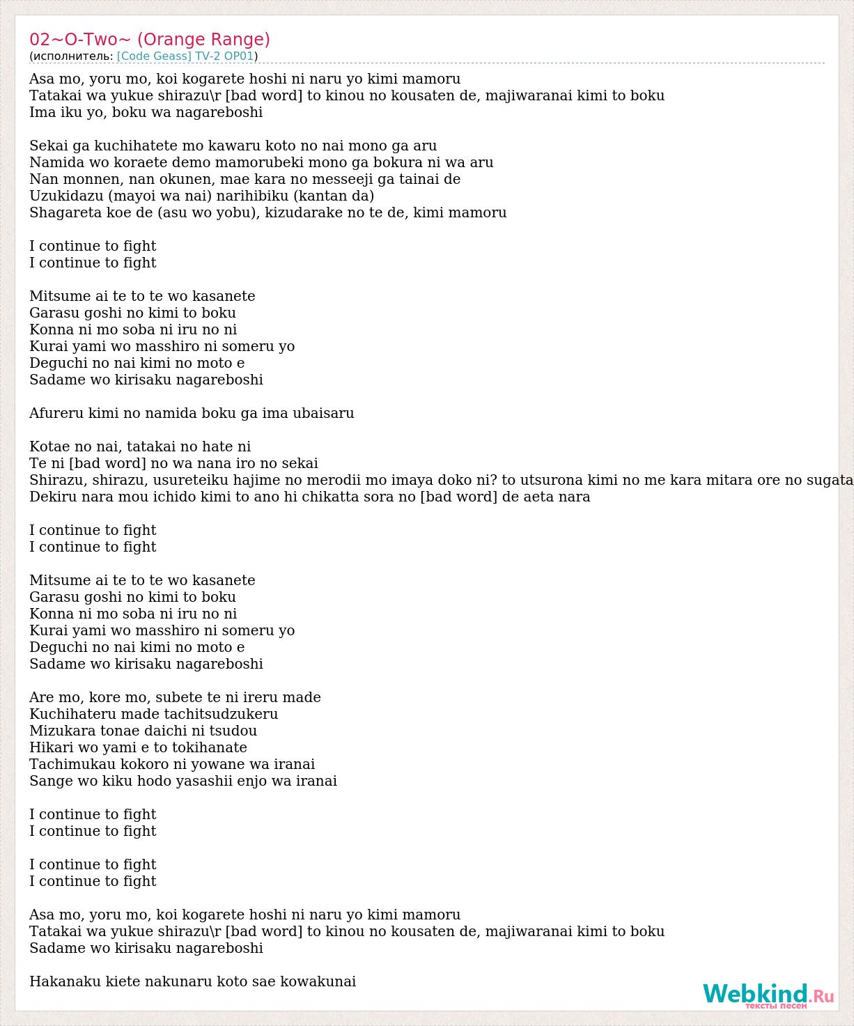 А как ты думаешь, о чем песня "02~O-Two~ (Orange Range)" ?