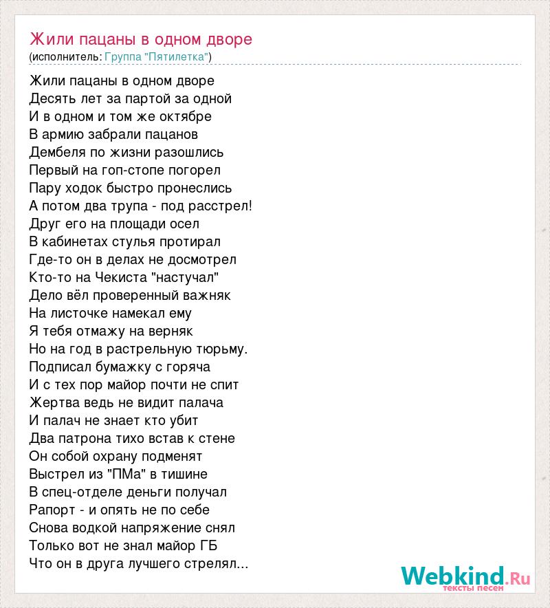 А как ты думаешь, о чем песня "Жили пацаны в одном дворе" ?