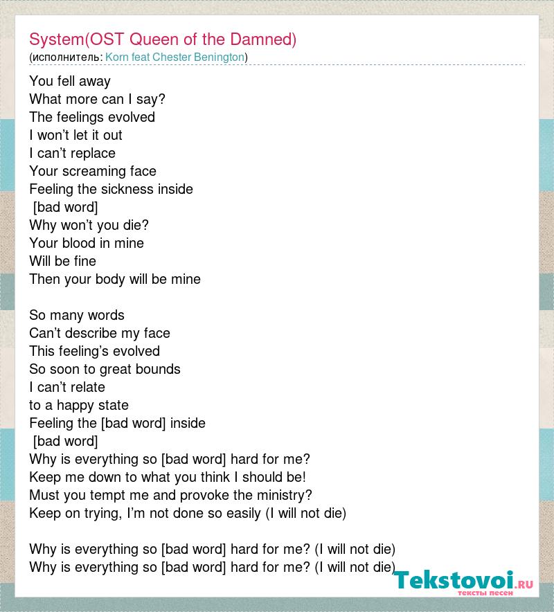 А как ты думаешь, о чем песня "System(OST Queen of the Damned)" ?