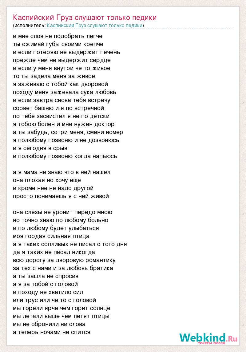 и мне слов не подобрать легче ты сжимай губы своими крепче и если потеряю не выдержит печень прежде чем не выдержит сердце и если у меня внутри че то живое то ты задела меня за живое я заживаю с тобой как дворовой походу меня зажевала сука любовь и если завтра снова тебя встречу сорвет башню и я по встречной по тебе засвистел я не по детски я тобою болен и мне нужен доктор а ты забудь, сотри меня, смени номер я полюбому позвоню и не дозвонюсь и я сегодня в срыв и полюбому позвоню когда напьюсь а я мама не знаю что в ней нашел она плохая но хочу еще и кроме нее не надо другой просто понимаешь я с ней живой она слезы не уронит передо мною но точно знаю по любому больно и по любому будет улыбаться моя гордая сильная птица а я таких сопливых не писал с того дня да я таких не писал никогда всю дорогу за дворовую романтику за тех с нами и за любовь братика а ты зашла не спросив а я за тобой с головой и походу не хватило сил или трус или че то с головой мы горели ярче чем горит солнце мы летали выше чем летят птицы мы не обронили ни слова а теперь ночами не спится
