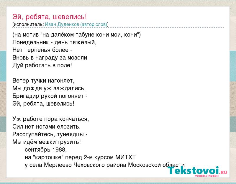 А как ты думаешь, о чем песня "Эй, ребята, шевелись!" ?