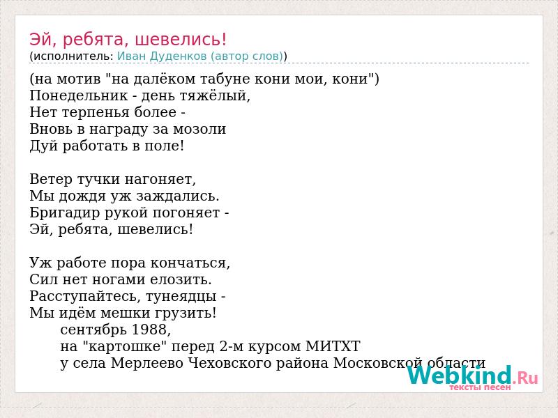 А как ты думаешь, о чем песня "Эй, ребята, шевелись!" ?