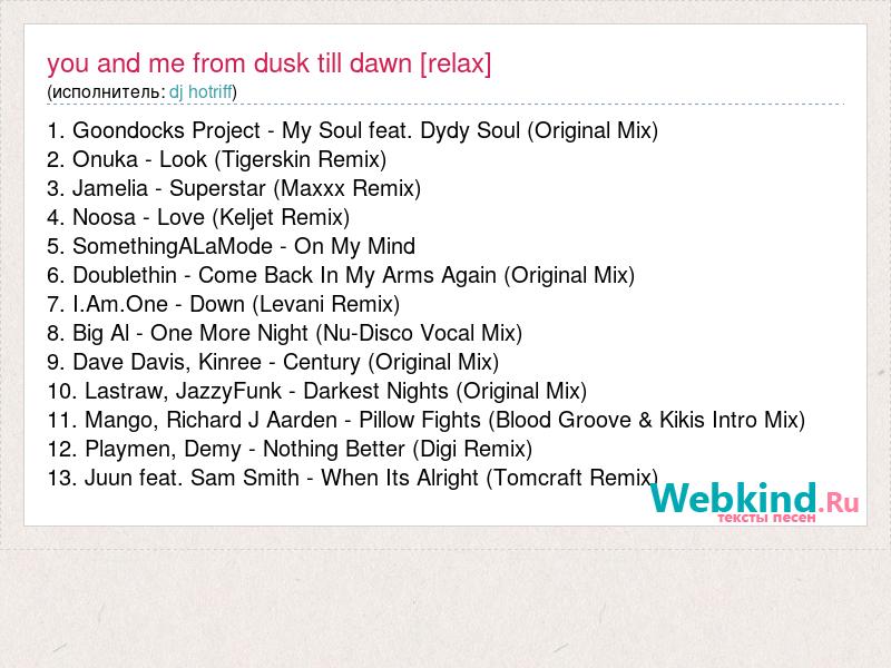 А как ты думаешь, о чем песня "You and me from dusk till dawn [relax]" ?