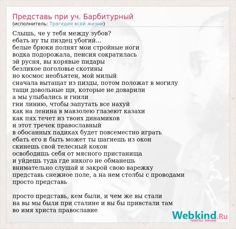 А как ты думаешь, о чем песня "Представь при уч. Барбитурный" ?